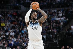 上半场比赛,森林狼球员兰德尔发挥不错,进攻端上来就发力连砍10分带队建立领先,首节贡献12分;次节主要串联助队守住领先。